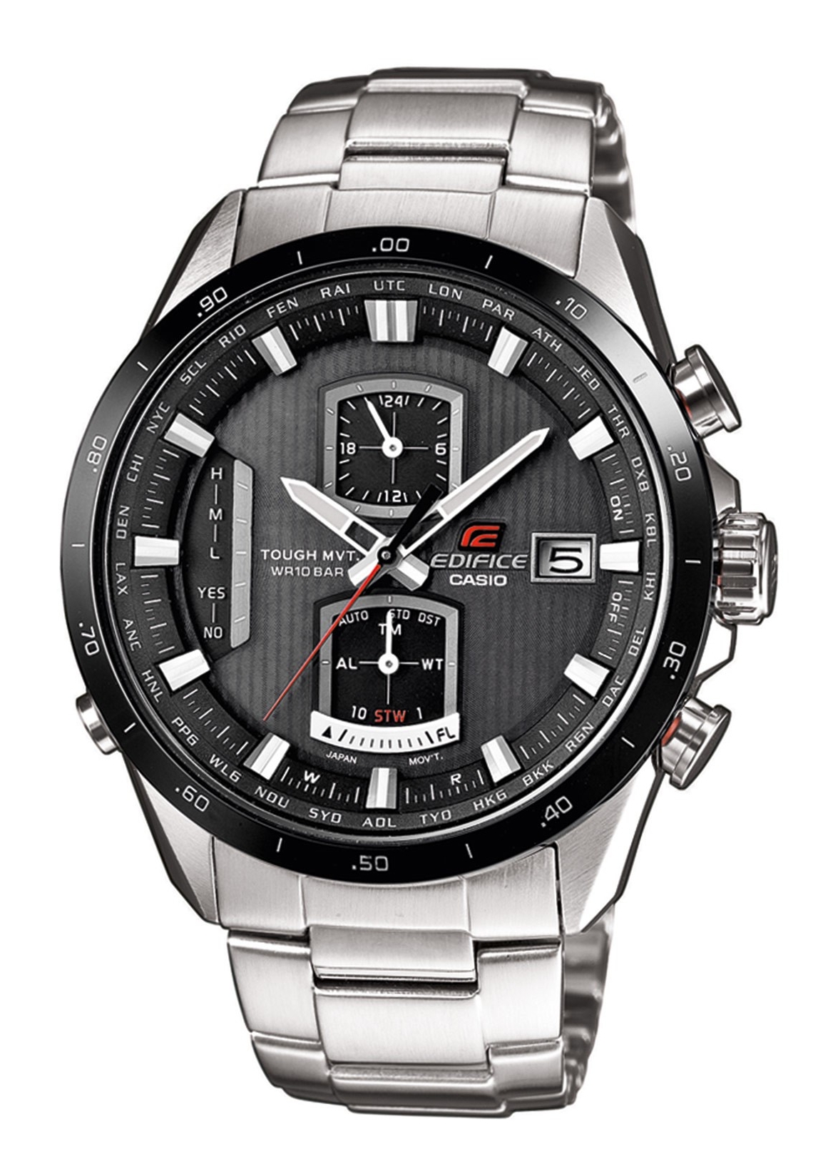 Diese atomfunkuhrpräzise Ganggenauigkeit mit den weiteren Funktionen, wie Weltzeiten-Einstellmöglichkeiten, Heimatzeiteinstellung, Sommer- und Winterzeit-Automatik-Einstellung, Stoppuhr mit Rundenzeiten ist schon ein Wunderwerk der Technik.