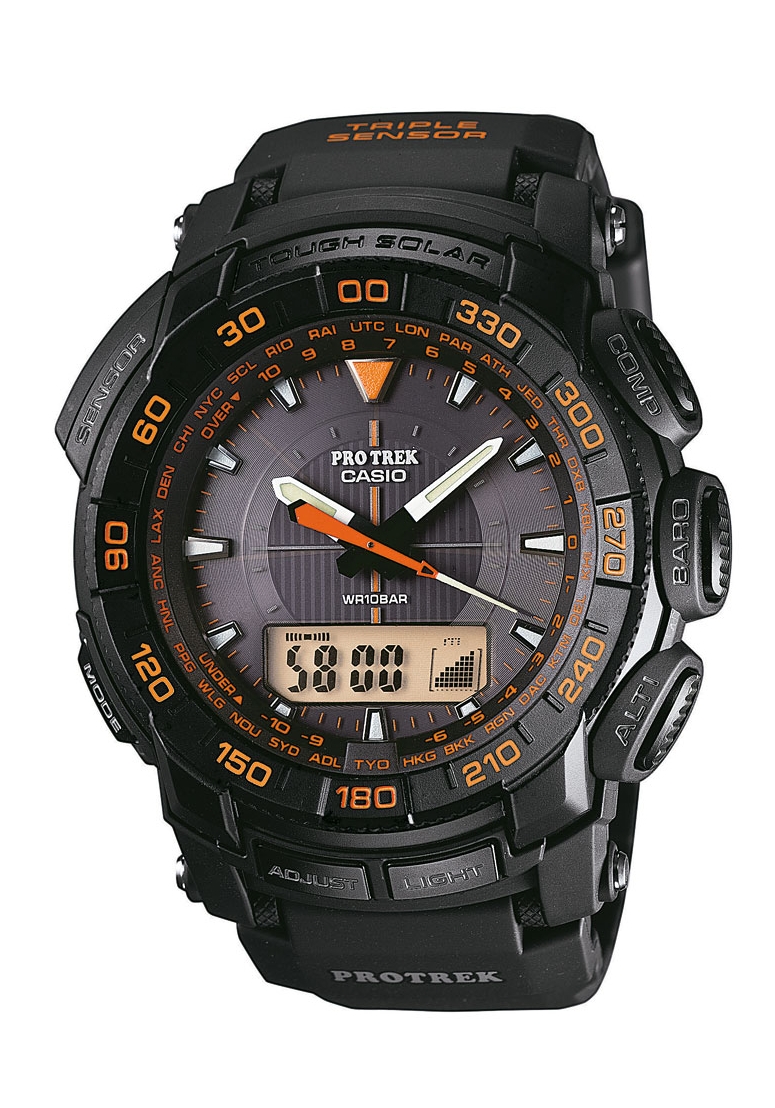 Thermometer (-10°C / +60°C): Ein Sensor misst die Umgebungstemperatur der Uhr und zeigt diese in Grad Celsius