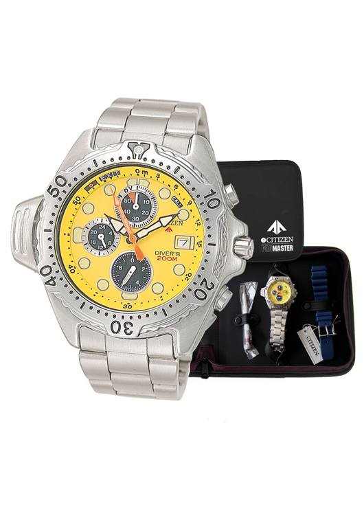 mit blauem Silikon- Wechselarmband der Marke Citizen