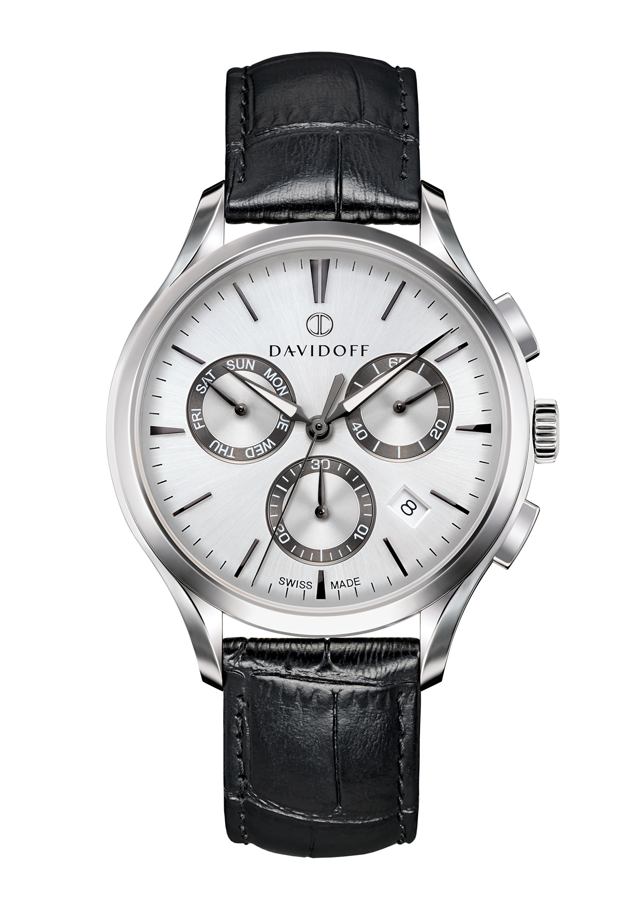 Dieser klassisch-elegante Herrenchronograph der Marke Davidoff wird mit einem präzisen Swiss Made
