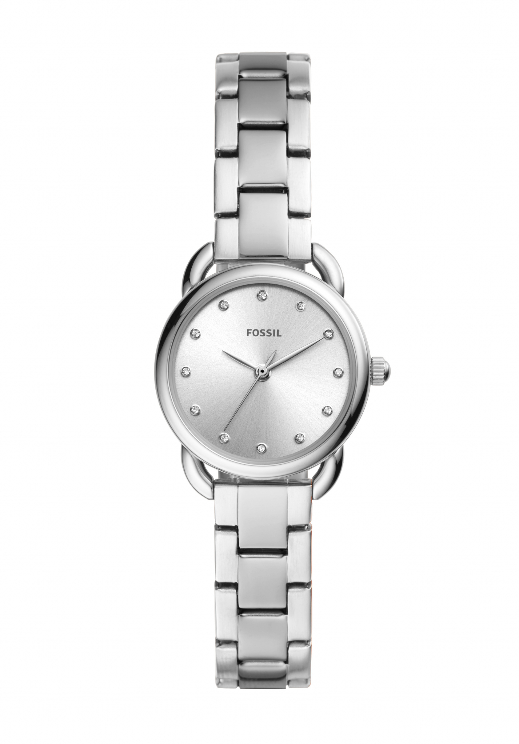 Auf dem silbernen Zifferblatt befindet sich ein Fossil Logo.