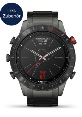 Die Garmin MARQ Driver ist eine robust-maskuline Smartwatch. Dieses Modell richtet sich an alle Rennfahrer und PS-Fanatiker, die mehr über Ihr Fahrverhalten erfahren möchten. Das ultraleichte Titan