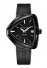 Auf dem schwarz-strukturierten Zifferblatt befindet sich ein Hamilton Ventura Schriftzug.