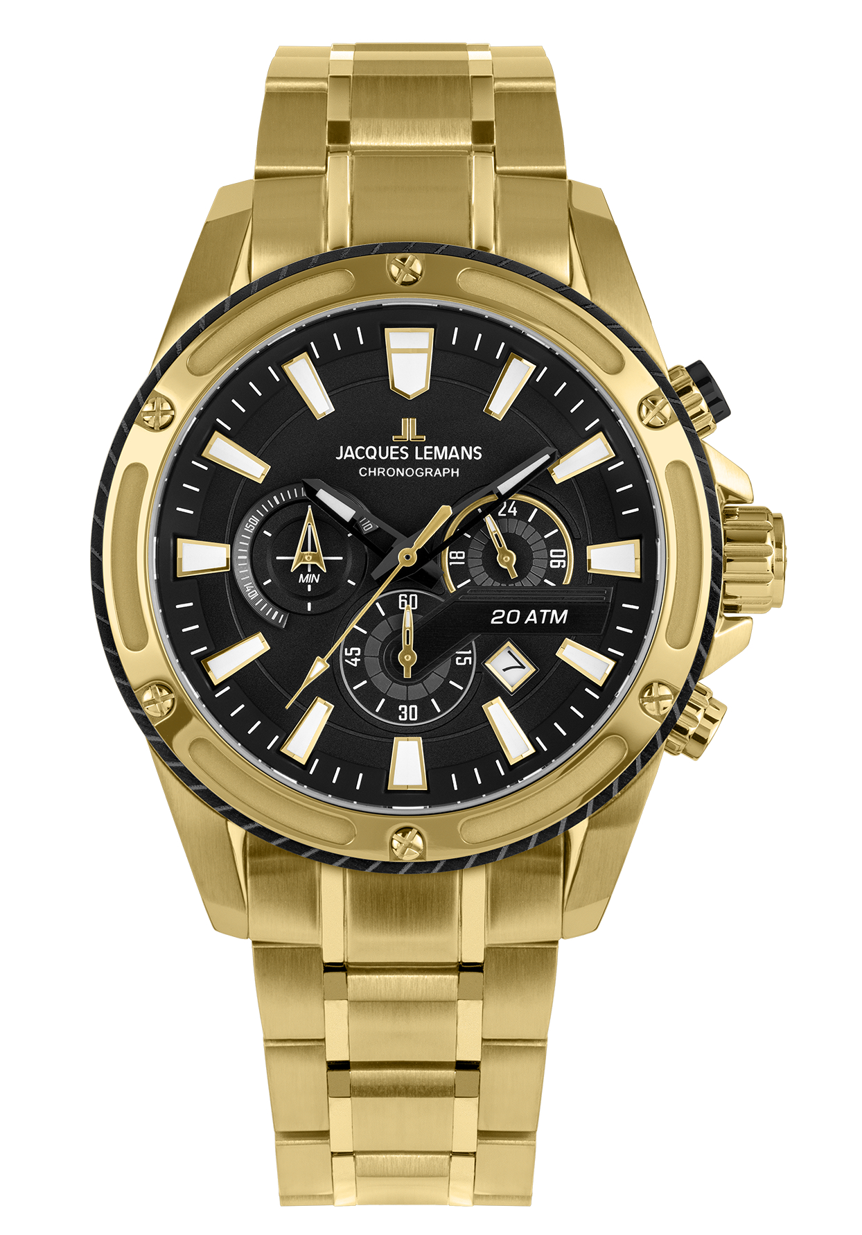 bis zu 20 bar, die auch bei sportlichen Aktivitäten und Wasserkontakt keine Kompromisse eingeht. Das Edelstahlarmband mit Sicherheits-Faltschließe