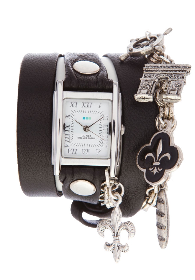 Mit Wickelarmband aus Leder in schwarz.