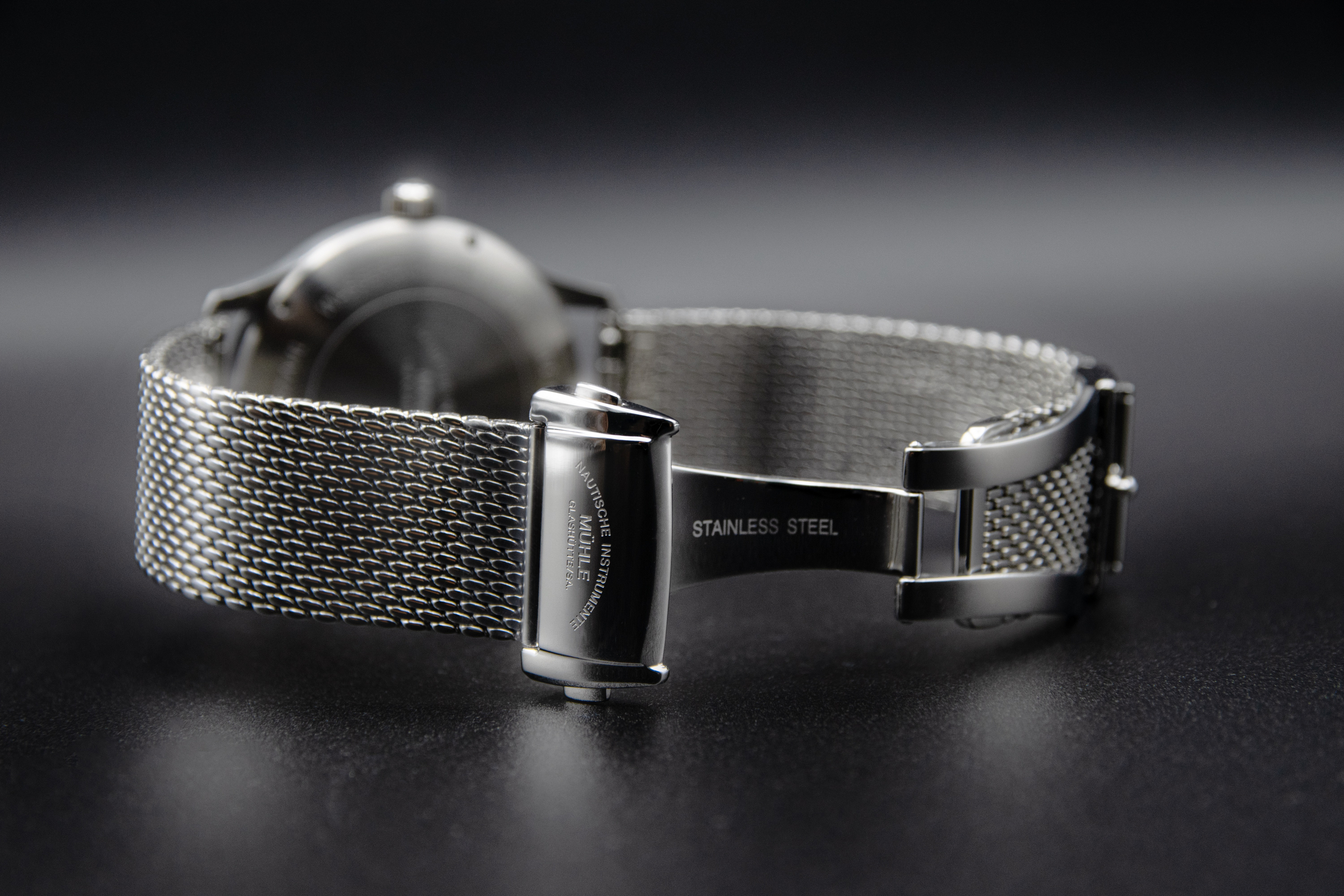 Die Uhr wird an einem hochwertigen Milanaiseband