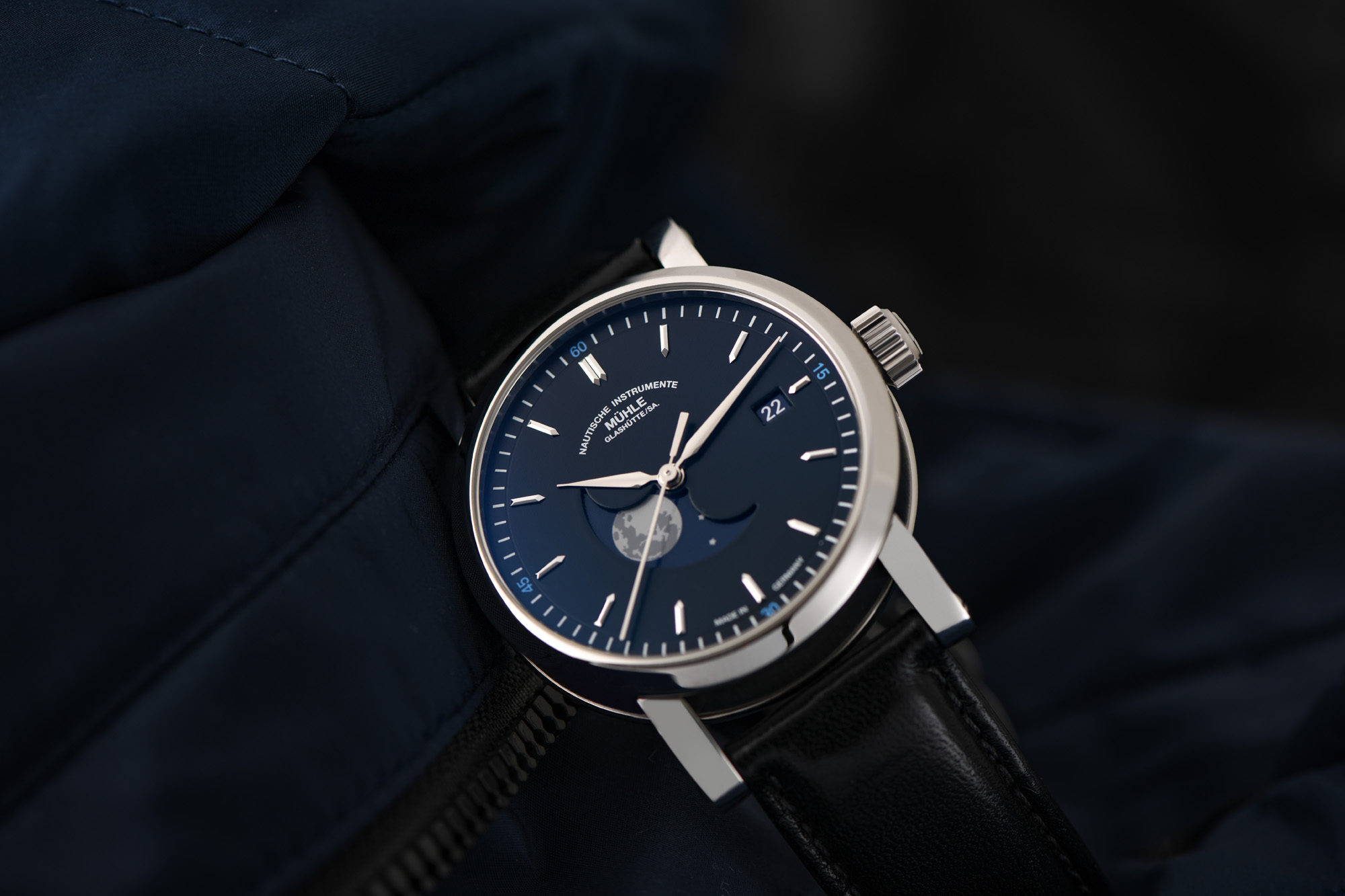 verbirgt sich ein nachtblaues Zifferblatt mit applizierten Indizes
