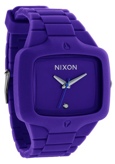 Lilafarbenes Zifferblatt mit weißem Nixon-Schriftzug