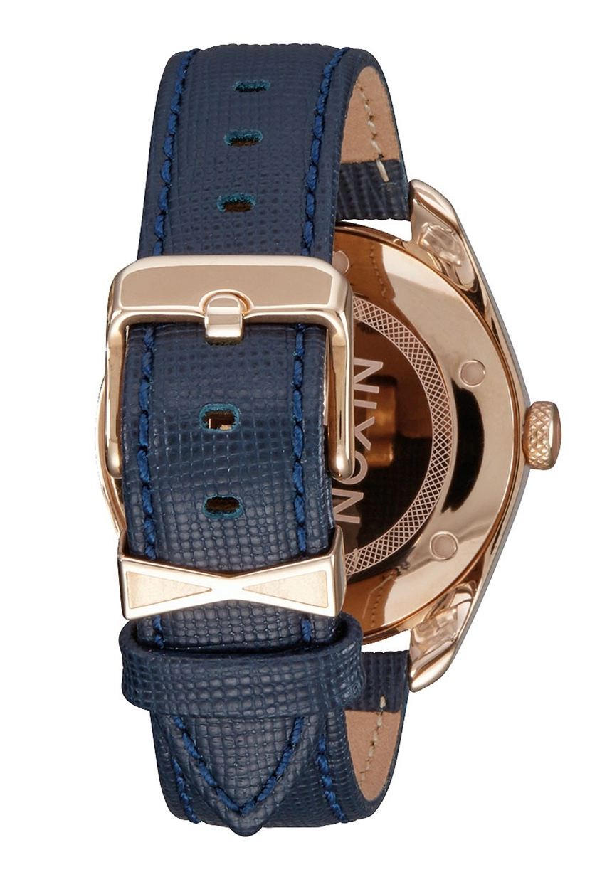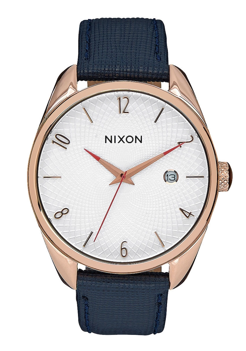 Auf dem weißen, fein-designten Zifferblatt befindet sich ein Nixon Logo.