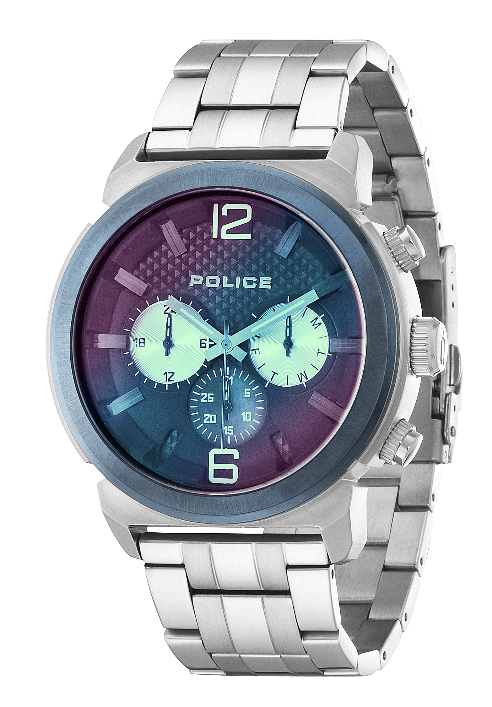 Auf dem Zifferblatt befindet sich ein Police Schriftzug.