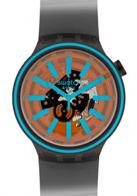 Diese extravagante Armbanduhr der Marke Swatch aus der Serie Big Bold wird durch ein präzises Swiss Made
