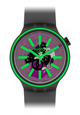 Diese extravagante Armbanduhr der Marke Swatch aus der Serie Big Bold wird durch ein präzises Swiss Made