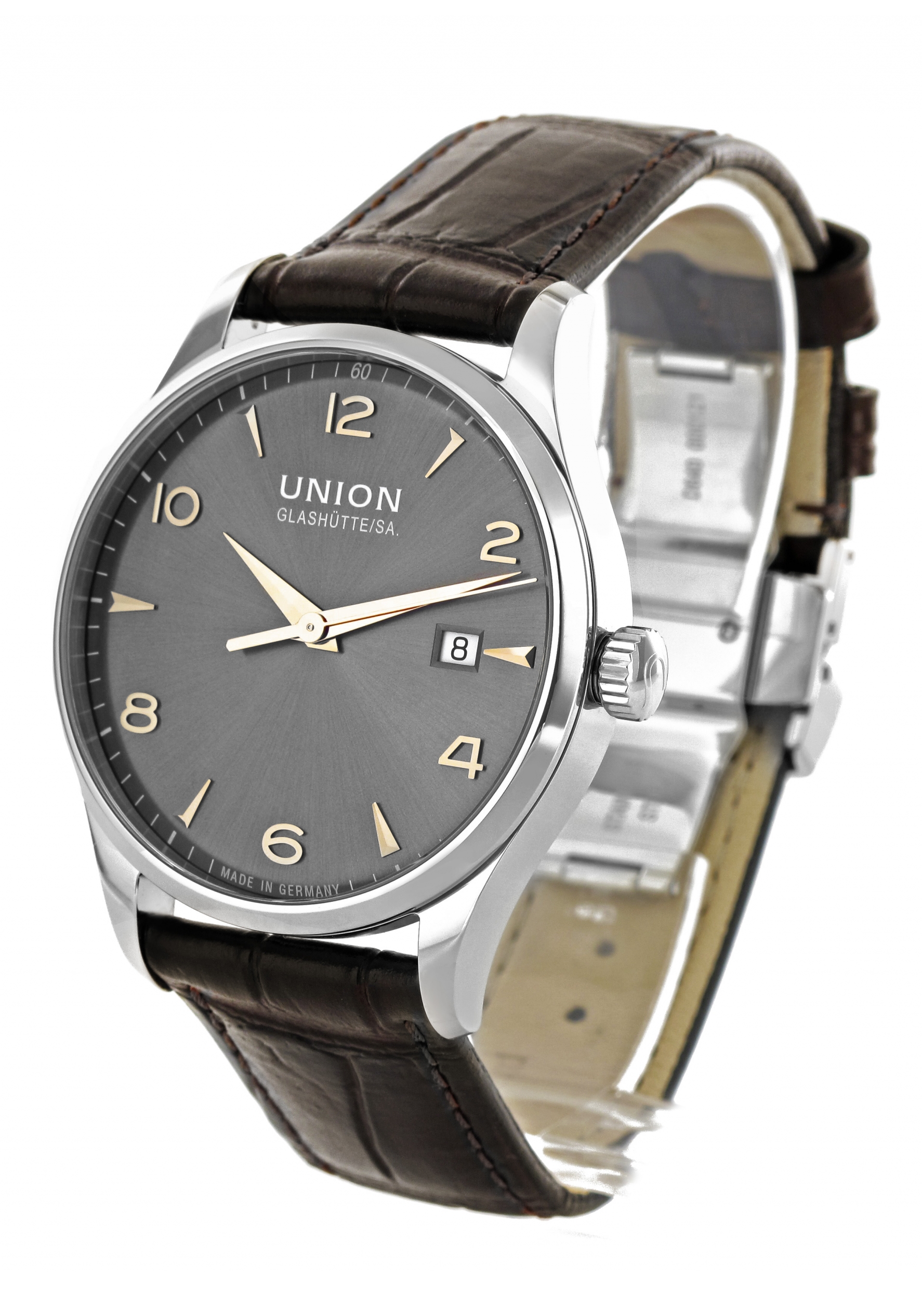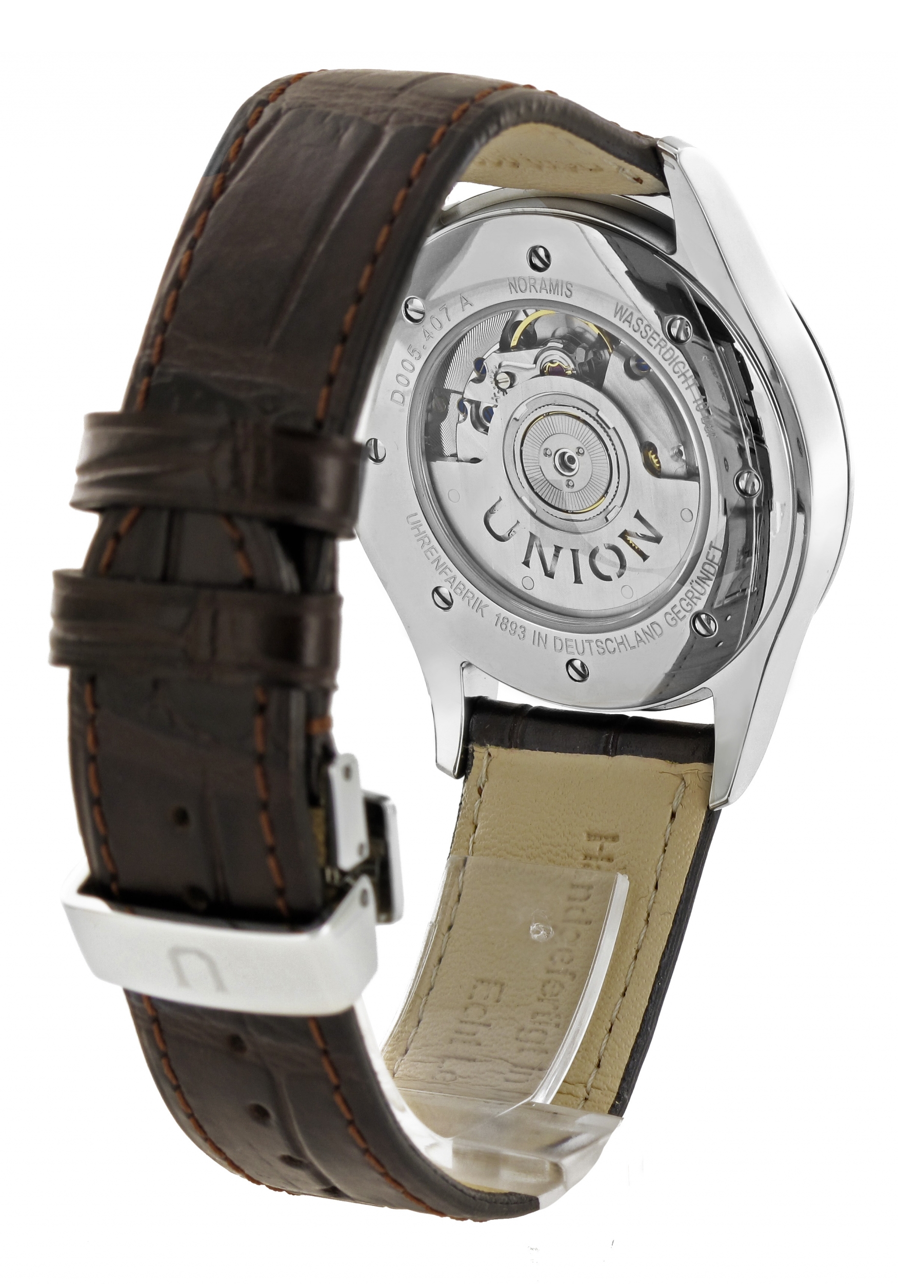- Graziöse-eleganter AutomatikuhrDie Automatikuhr ist eine mechanische Armbanduhr, bei der die Feder bei Armbewegungen des Trägers durch einen Rotor in kleinen Schritten aufgezogen wird.der Marke Union Glashütte S.A.